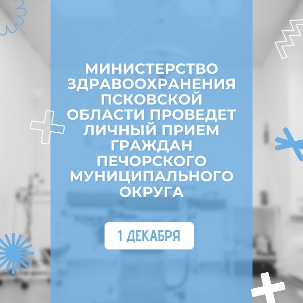 1 декабря личный приём граждан, проживающих в Печорском муниципальном округе, по вопросам здравоохранения пройдёт в администрации в Печорах по адресу: г. Печоры, ул. Каштановая, д. 1, каб. № 10, с 10.00 до 11.30.
