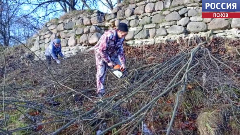 И для этого вооружились не только граблями и мешками для опавшей листвы. Но и топорами и пилами. Местные вспоминают, как с крепостных валов катались на санках, теперь там все заросло кустами и деревьями. Одними из первых к субботникам присоединились сотрудники Гдовского музея. Говорят, что теперь, благодаря такой масштабной уборке крепостные стены задышали.