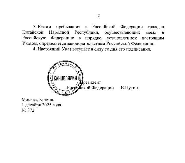 С 1 декабря граждане Китая могут приезжать в Россию без виз до 14 сентября 2026 года – на срок до 30 дней. Указ подписал Путин. С 15 сентября, напомним, заработал безвиз для россиян, отправляющихся в Китай.