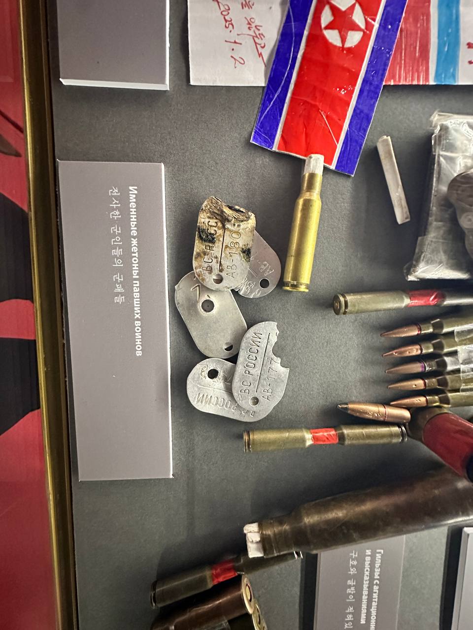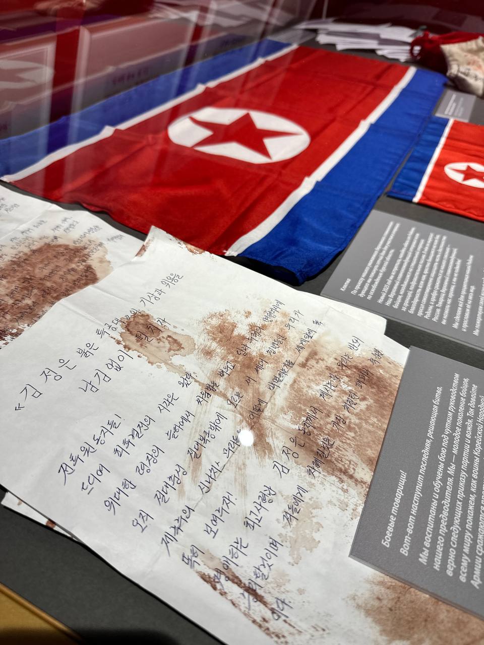 Увидел здесь личные вещи павших бойцов - жетоны, флаги КНДР, письма родным с бурыми пятнами крови. Есть мешочек земли с горстью родной земли.