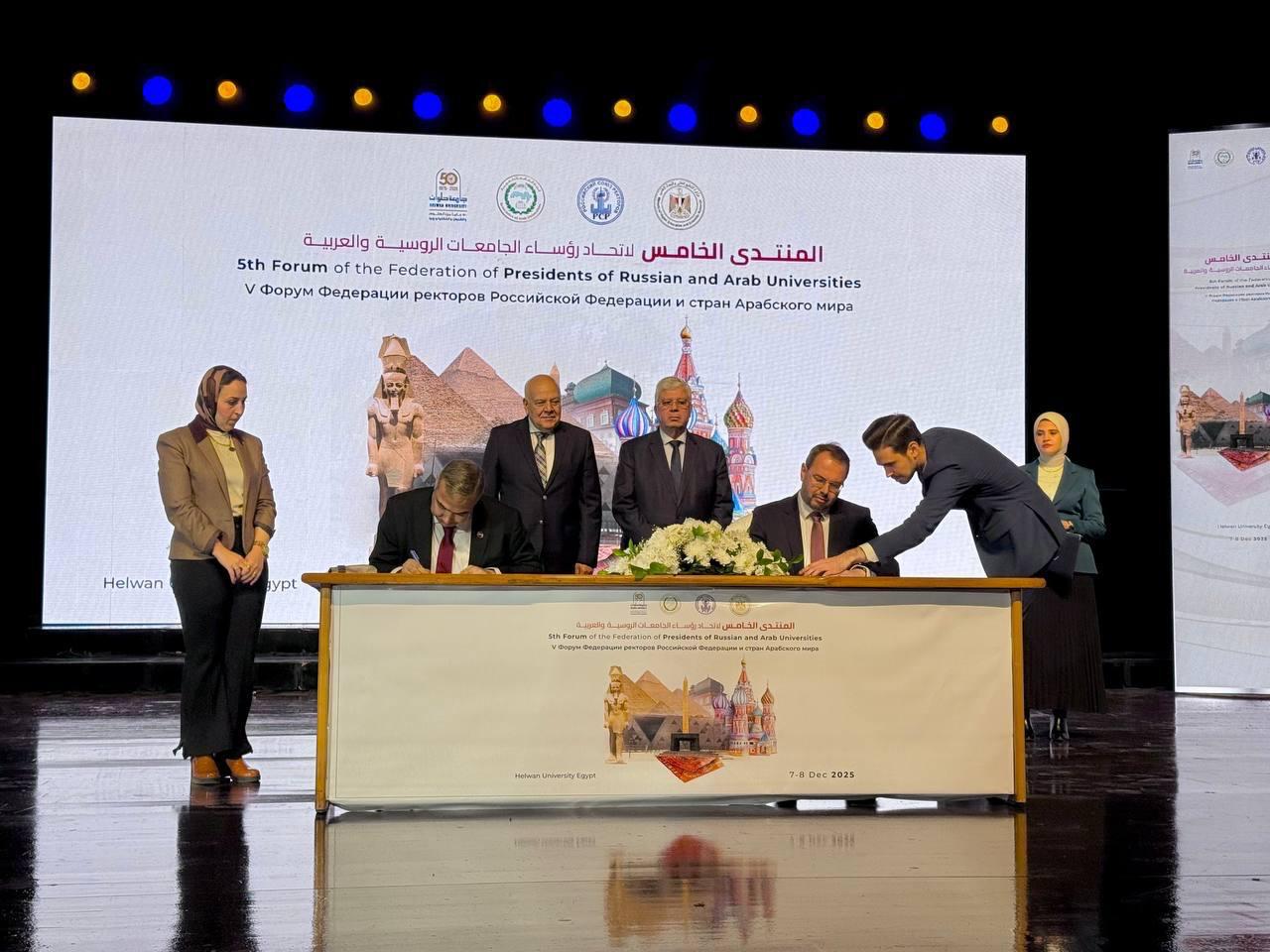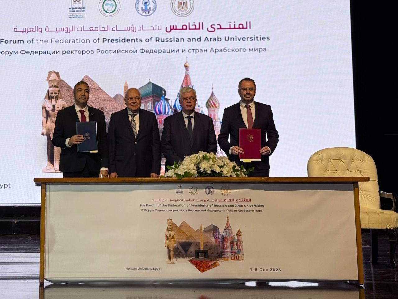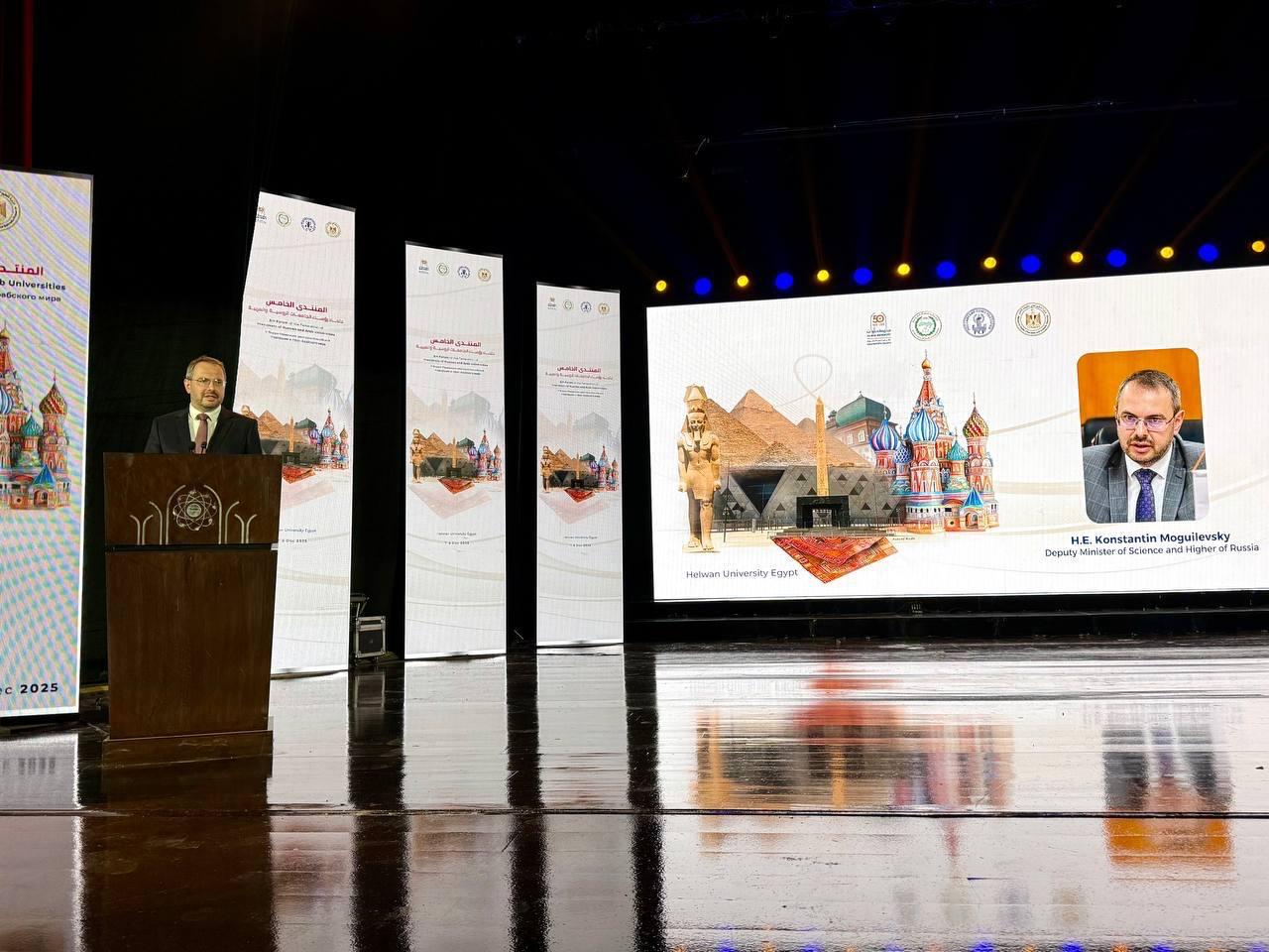 7-8 декабря в Каире проходит V Форум Федерации ректоров российских и арабских университетов. С приветственным словом к участникам и организаторам от лица Минобрнауки России обратился заместитель Министра Константин Могилевский.