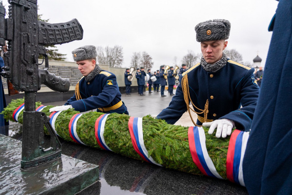 Центральное мероприятие прошло у мемориального комплекса защитникам Отечества на погосте Выбуты в Псковском округе. Представители власти и другие официальные лица, военнослужащие и жители региона возложили цветы к подножию монумента, почтив память героев.