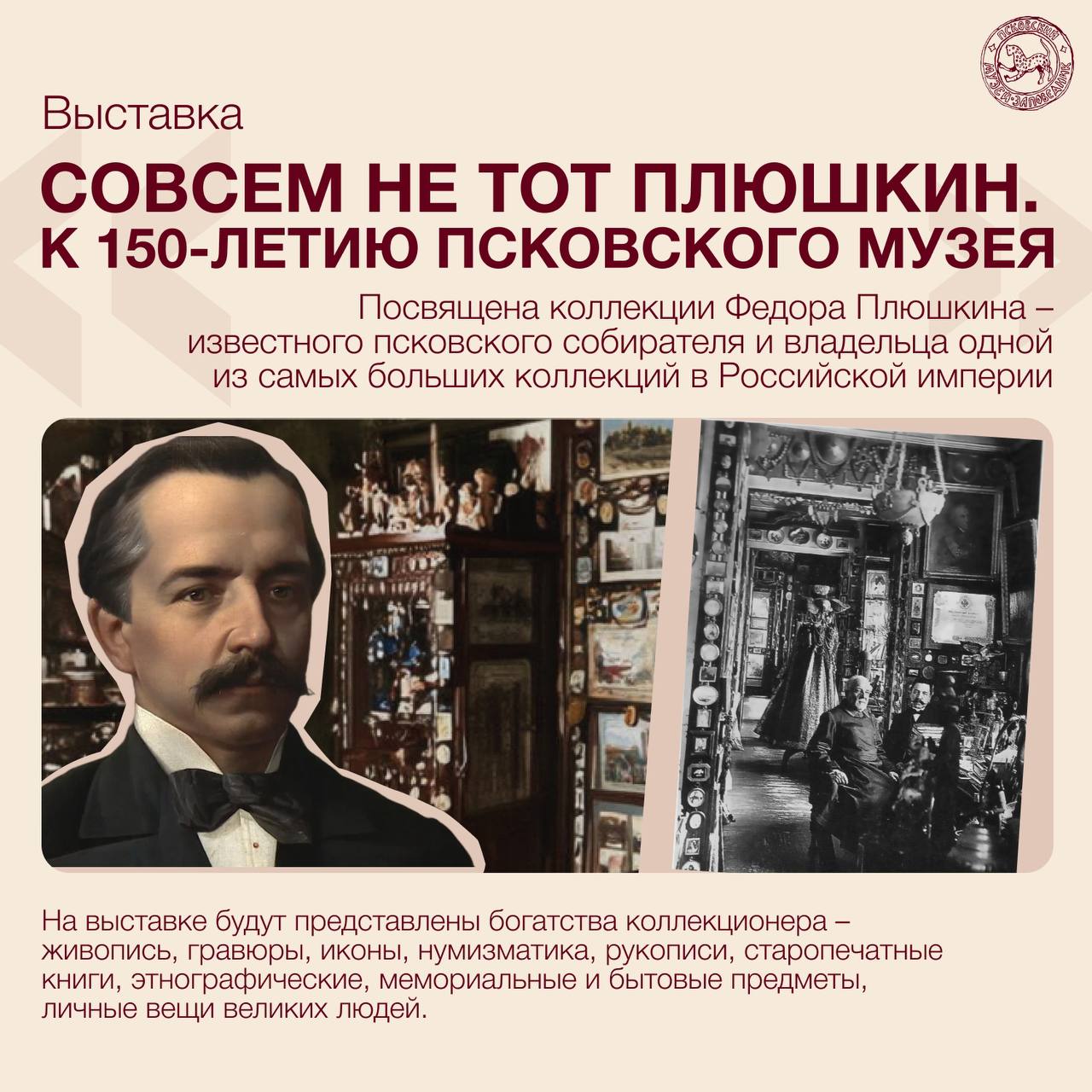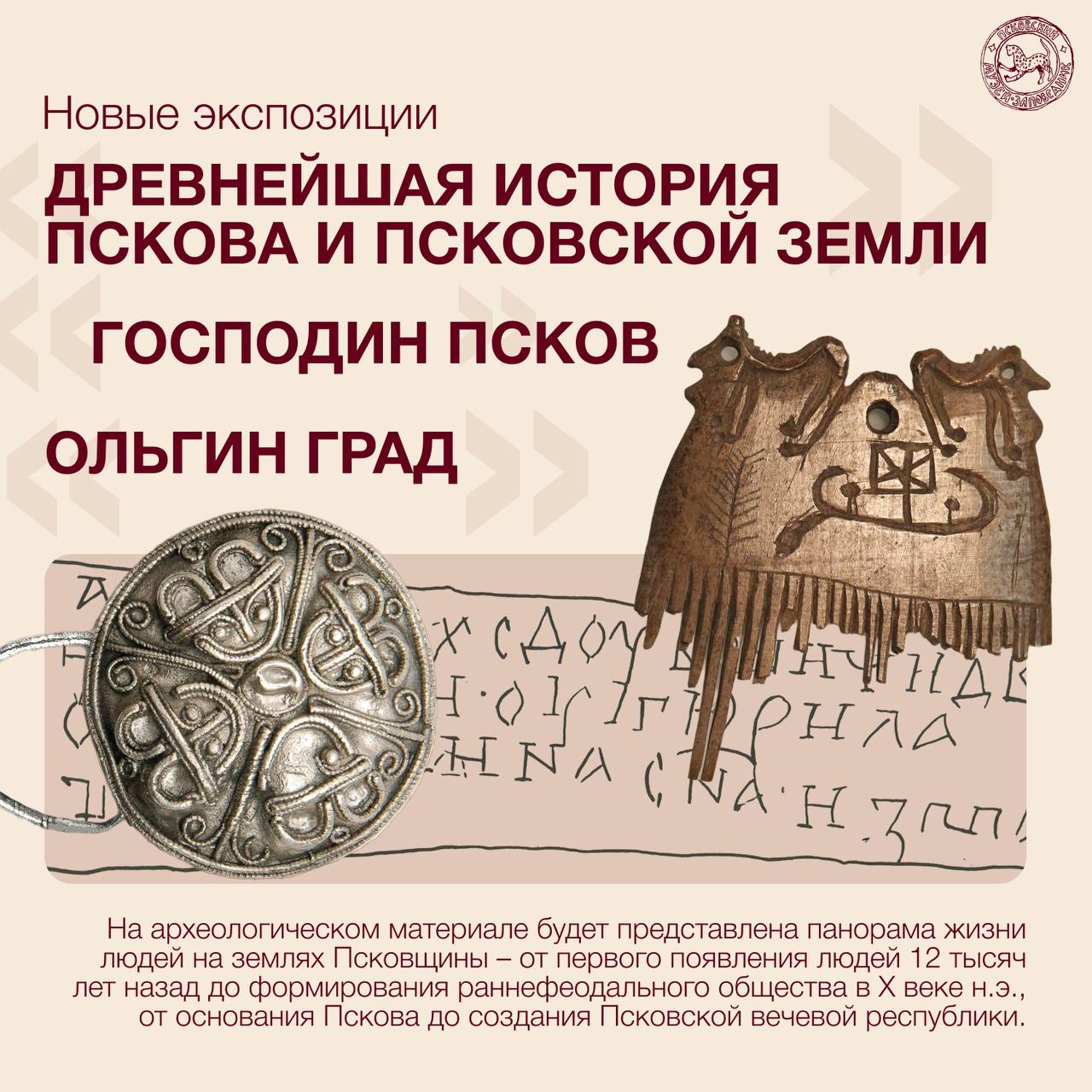 О планах на следующий год сообщила генеральный директор Псковского музея-заповедник Светлана Мельникова. В юбилейный год, год 150-летия Псковского музея, посетителей ждет свыше 30 выставок в пространствах музея и на других площадках по всей России. Проекты охватят огромное историческое пространство – от древнейших артефактов Псковщины до уникальных живописных полотен эпохи модернизма.