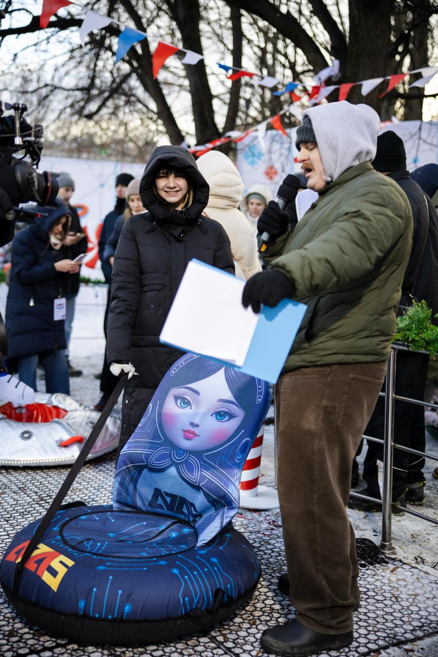 Помимо заездов были и призы — победителям дарили PS5, проектор, Nintendo Switch 2 и другие призы. Были подарочки от нашего генерального спонсора А7А5 — в номинации "А7 раз отмерь, А5 отрежь" дама с тюбингом-икрой забрала умные часики. Вот на фотокарточке последней стоит довольная. Поздравляем победителей ещё раз! Остальных — ждём на подобном мероприятии как-нибудь ещё раз.
