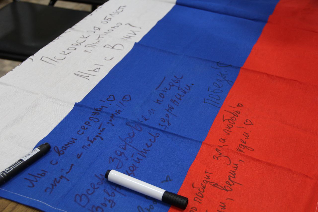 Сегодня в ДК г. Пыталово прошел благотворительный концерт, посвящённый закрытию года защитника Отечества. В фойе можно было сделать фотографию на память, написать поздравительную новогоднюю открытку солдату, подписать флаг благодарности, примерить на себя бронежилет, побывать под масксеткой, подержать в руках макеты оружия.