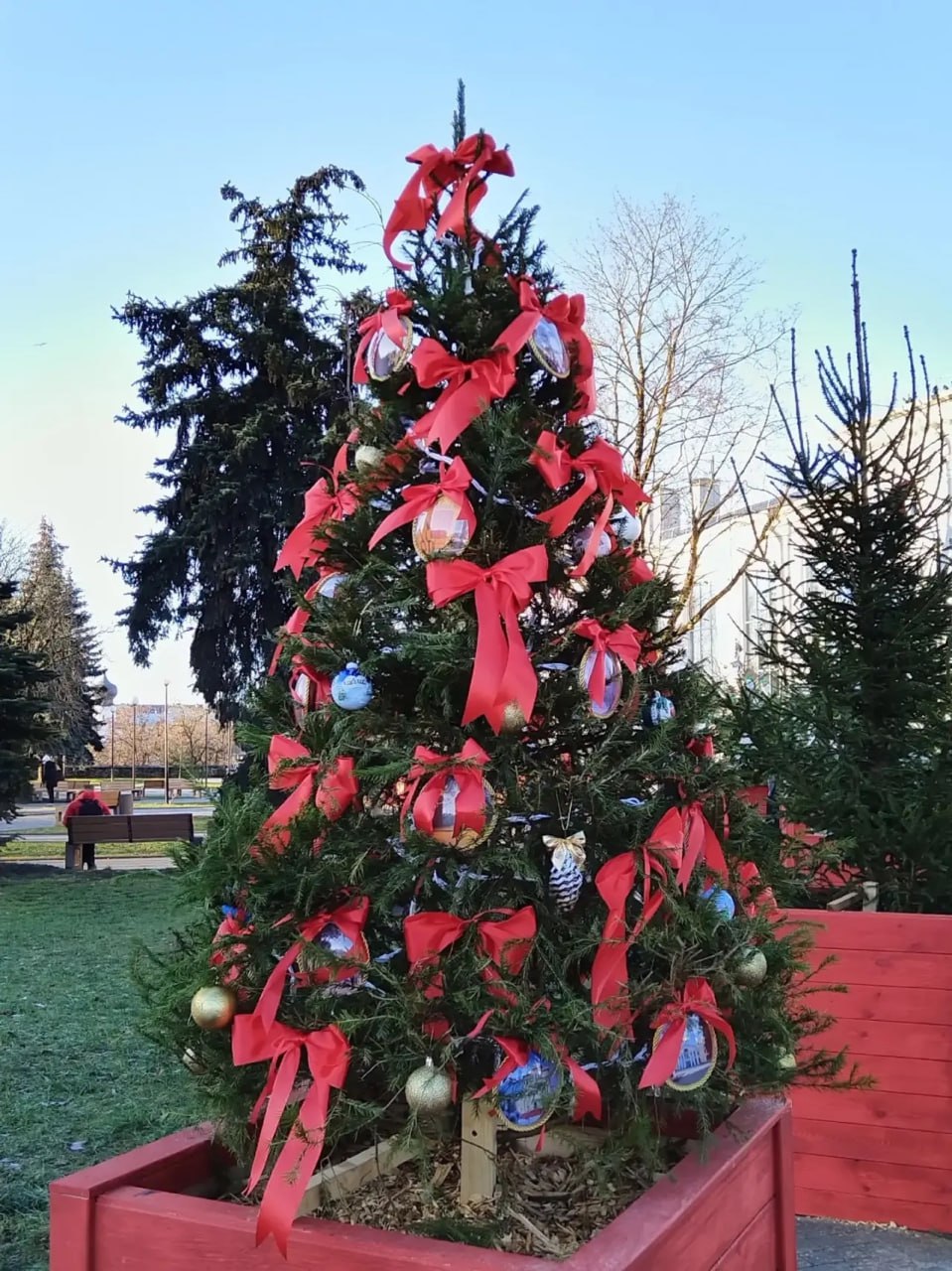 Праздничный наряд создан заботливыми руками работников культурной сферы города и Дома детского творчества. Все игрушки выполнены вручную, елочные шары украшены фотографиями знаковых мест Великих Лук.