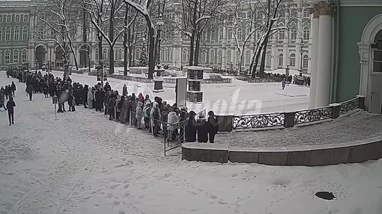 Гигантские очереди снова приходится отстоять тем, кто решил культурно просветиться в Эрмитаже. Посетители проводят на холоде по несколько часов. Сегодня, в честь Рождества, музей распахнул свои двери абсолютно бесплатно для всех желающих. Но получить билет все равно нужно, и людей запускают небольшими группами. Поэтому всем пришедшим приходится запастись терпением.