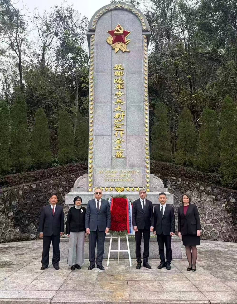 5 января в г. Гуйлинь (Гуанси-Чжуанский автономный район) Посол России в Китае Игорь Моргулов совместно с Генеральным консулом России в Гуанчжоу Юрием Тепловым, а также руководителем Канцелярии иностранных дел г. Гуйлиня Вэнь Пу возложил венок к памятнику советскому военному советнику И.М.Бабашкину.