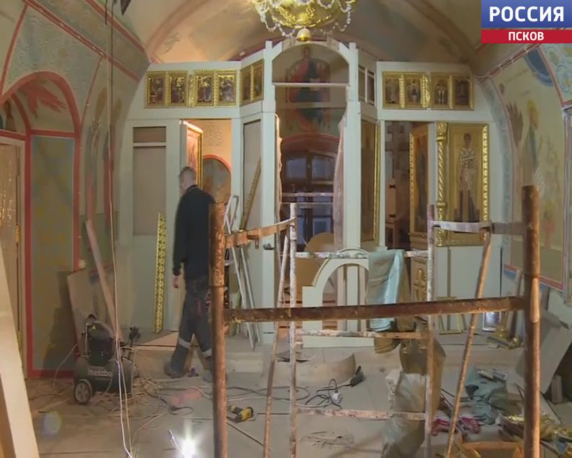 "Готовность объекта высокая. Планируется в ближайшее время завершить, сдать министерству культуры Псковской области. Разработаны проектные решения, которые позволяли отвести воду от самого здания. Инженером-проектировщиком, архитектором предложен козырек, который в принципе выполнен",