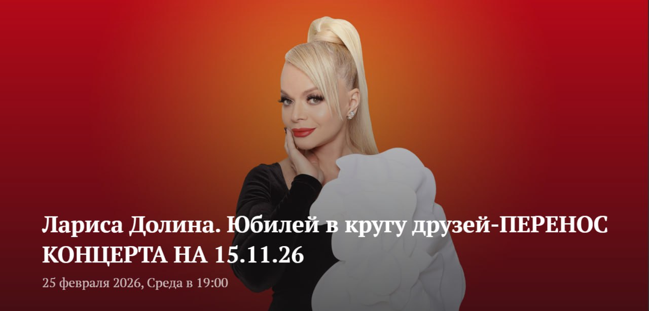 В феврале был запланирован юбилейный концерт Ларисы Долиной в большом зале почти на 4 тыс зрителей, но, увы, не получилось. На дворе середина января, а билетов продано примерно 30% от общей вместимости аудитории. Цена на прослушивание самой скандальной дамы 2025 года — от 2,2 тыс до 12 тыс. В итоге было решено перенести концерт на март. Сама артистка об отмене ничего не говорила, объявление вывешено на сайте питерского БКЗ «Октябрьский».