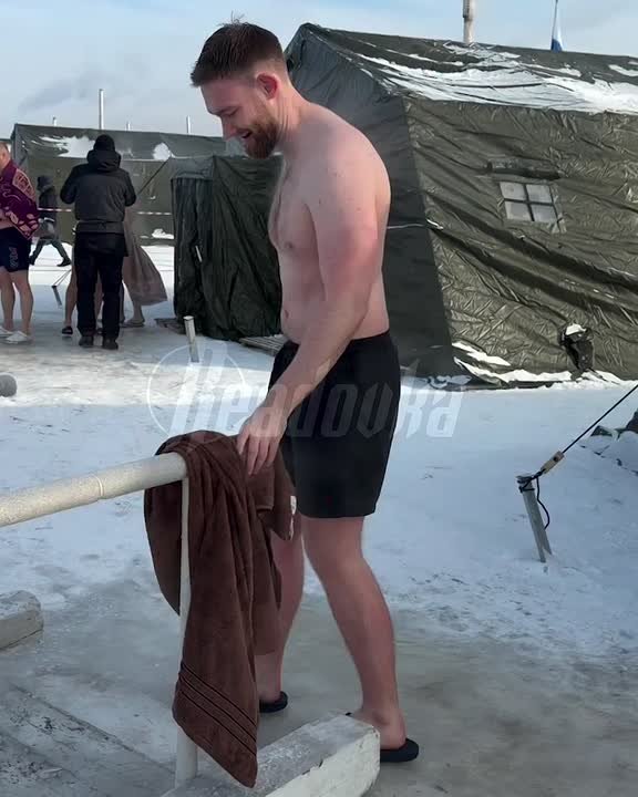 Несмотря на крепкие морозы, англичанин зашел в прорубь на Дальнем Востоке (на секундочку, там -25°C) и поздравил россиян с праздником. Еще один иностранец остался доволен купанием в проруби и удивился «замерзшим дредам».