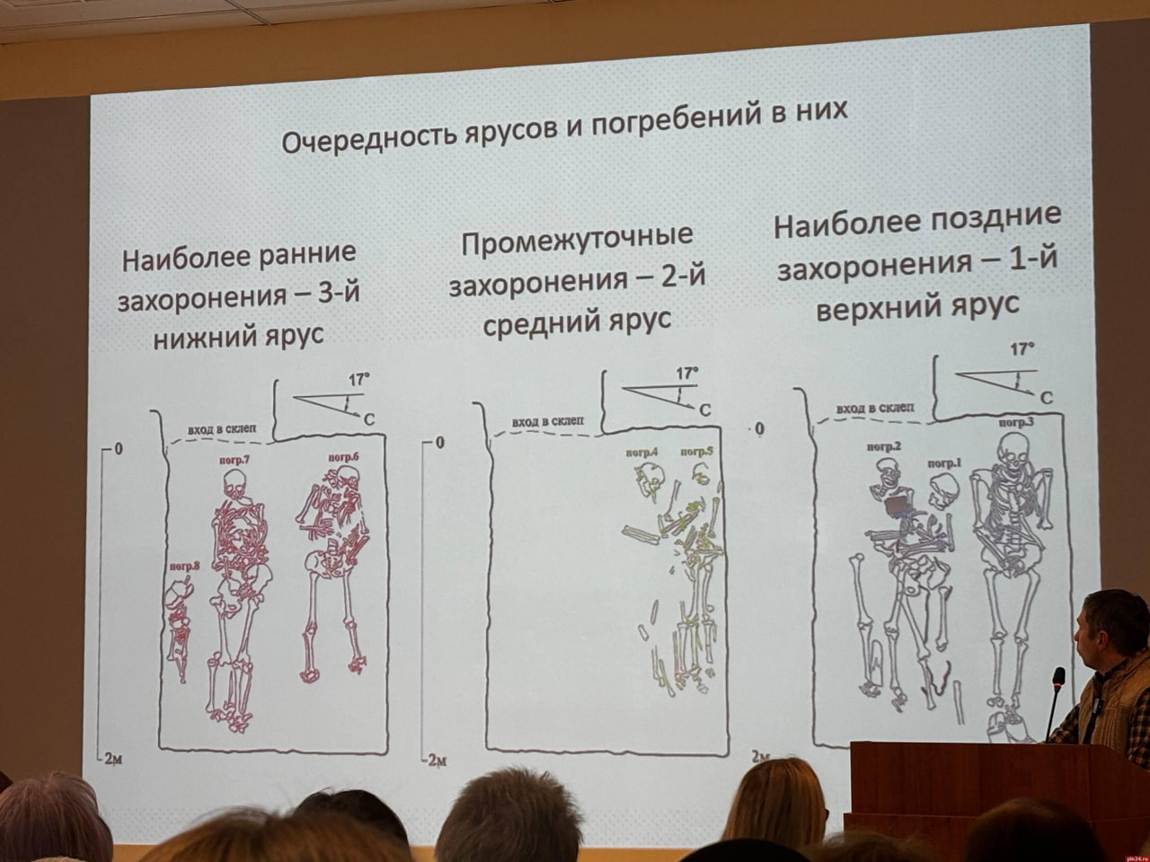 Мероприятие состоялось в рамках ежемесячного просветительского проекта «Археологи рассказывают». С подробным докладом «Западный склеп у храма Косьмы и Дамиана с Гремячей горы: данные истории и палеоантропологии» выступил начальник отдела хранения археологии Псковского музея-заповедника Антон Романовский.