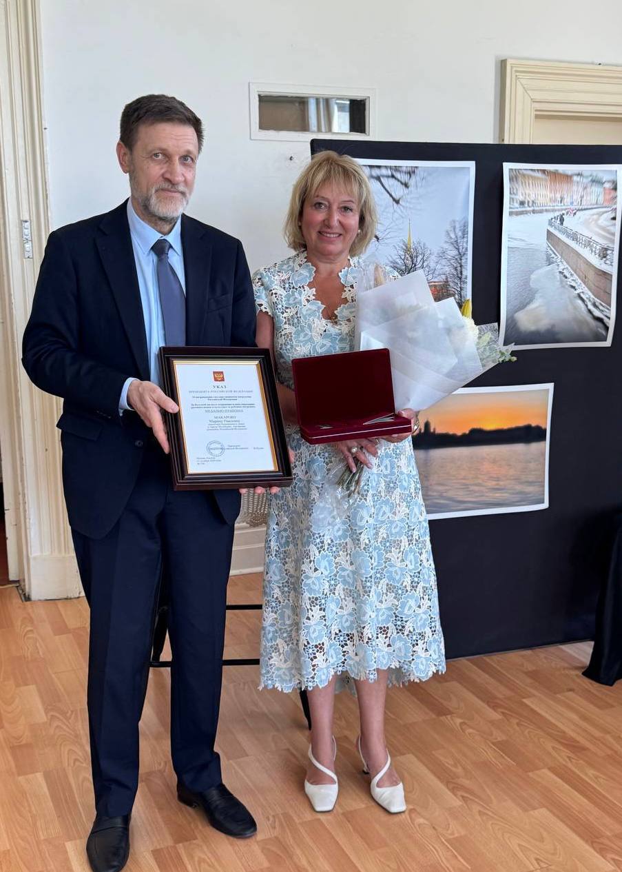 М.П.Макарова удостоена государственной награды в соответствии с Указом Президента Российской Федерации от 15 октября 2025 г. № 728 за большой вклад в сохранение и популяризацию русского языка и культуры за рубежом.