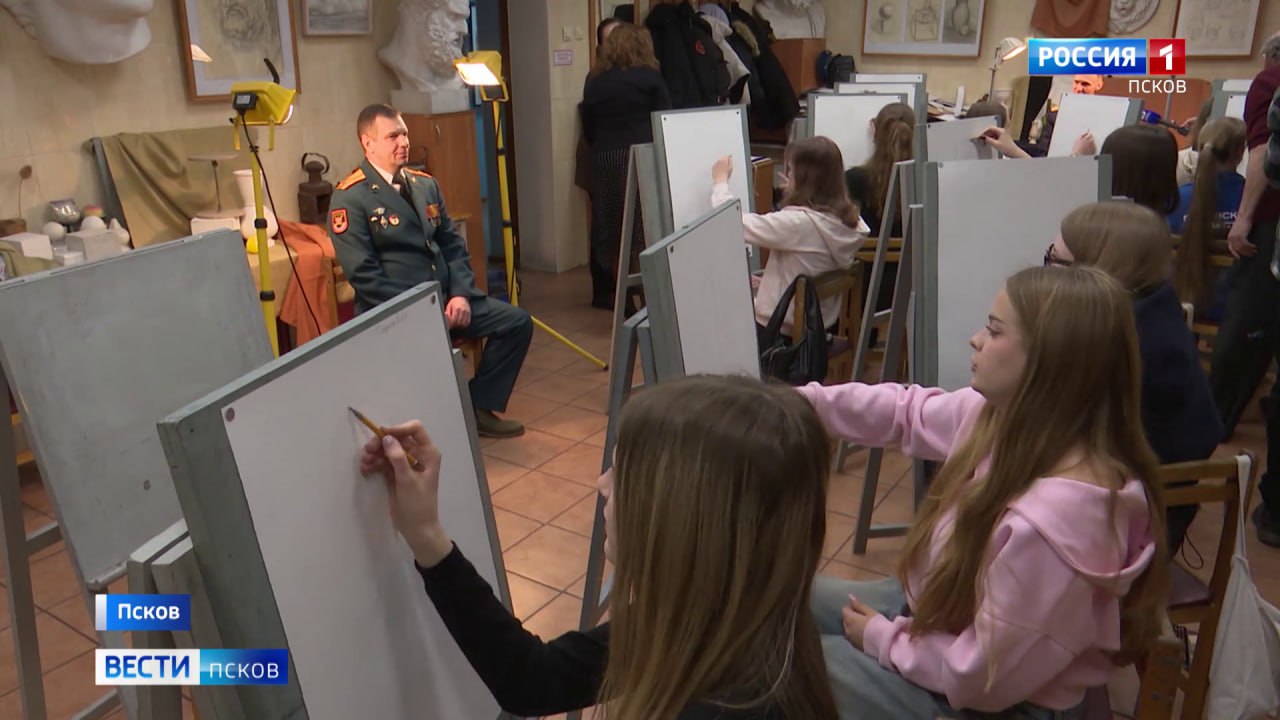 Сегодня моделями стали участники программы "Герои земли Псковской" Михаил Каратыш и Сергей Богомолов. Они общались с молодыми художниками, которые на холсте старались передать не только внешнее сходство, но и характер воина. Рисовать портреты ветеранов СВО учащиеся школы будут три дня подряд, с понедельника по среду.