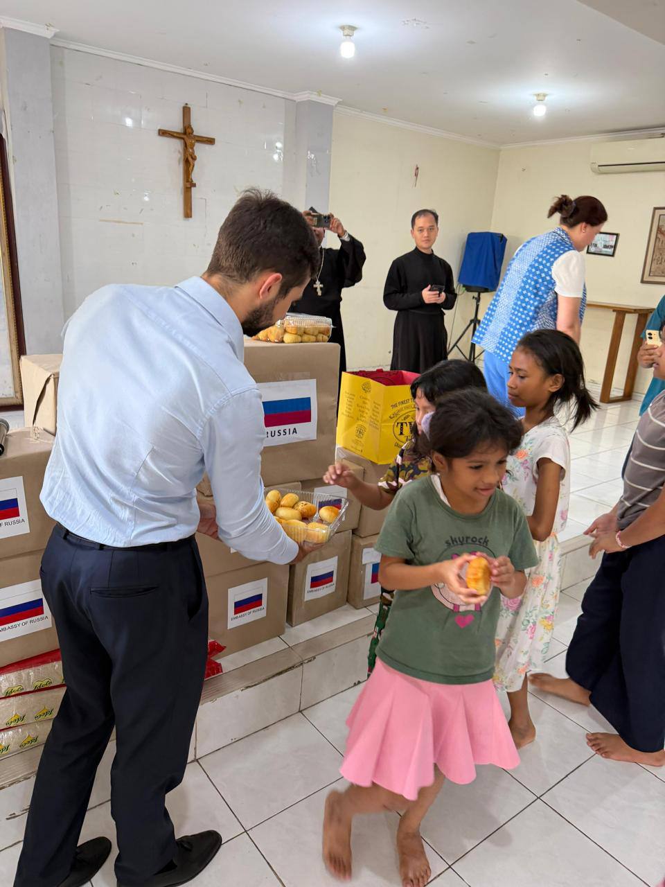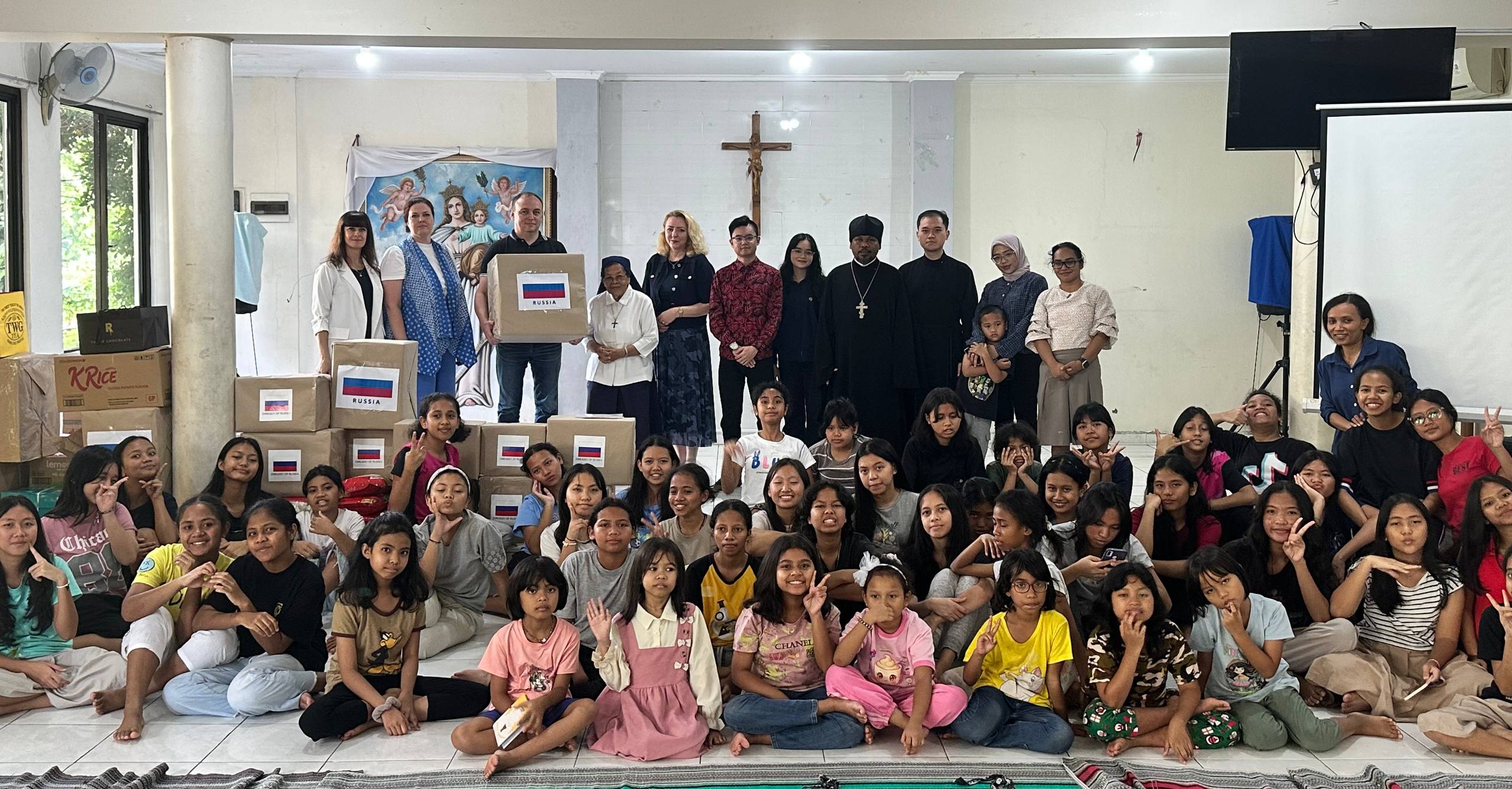 24 января сотрудники Посольства России в Джакарте провели церемонию передачи гуманитарной помощи воспитанникам детского дома «Panti Asuhan Pondok Damai».