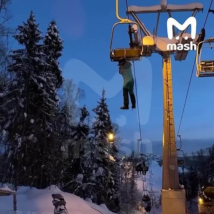 Сугробы спасали людей, застрявших на подъёмнике в Подмосковье, — некоторые горнолыжники прыгали в снег с высоты примерно 7 метров.