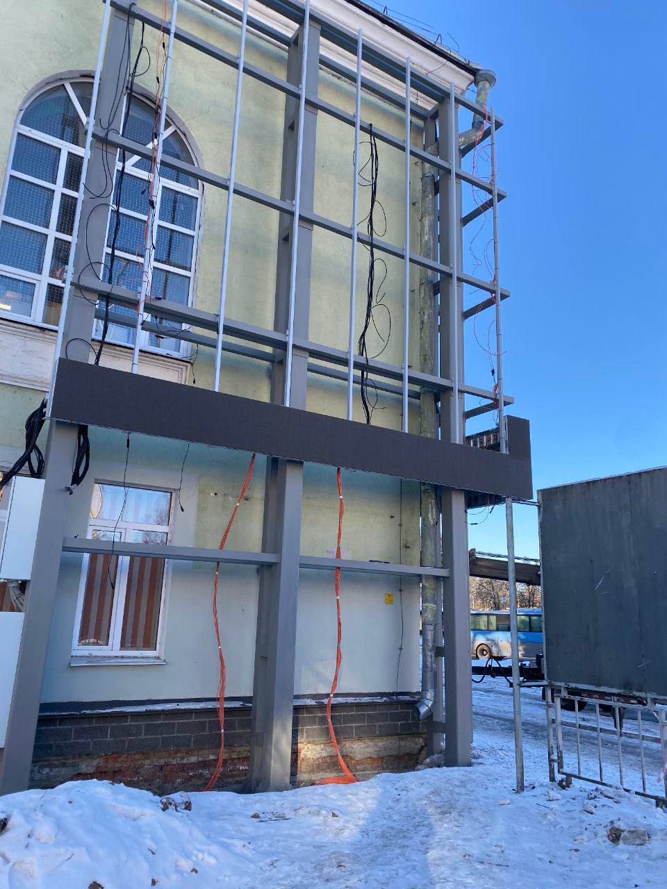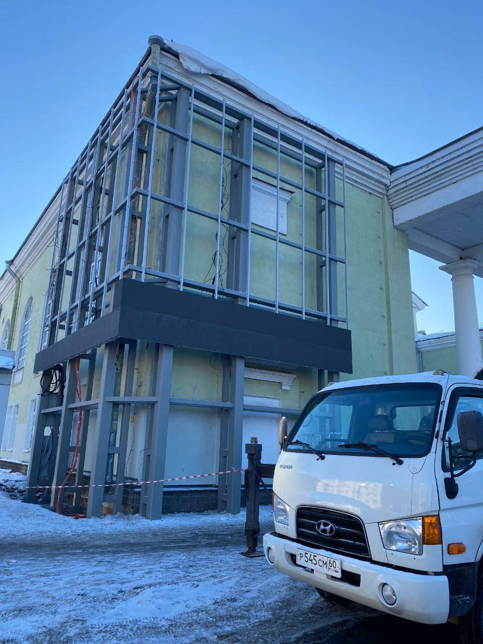 В Пскове стартовали работы по монтажу современного углового светодиодного экрана на фасаде Городского культурного центра (ГКЦ).