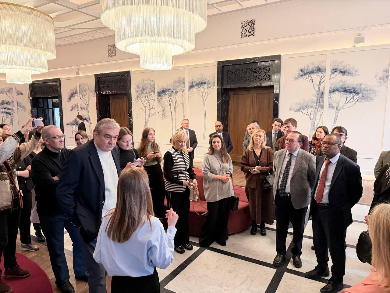 Почётными гостями стали послы, высокопоставленные дипломаты и члены их семей из порядка 50 стран, перед которыми с приветственным словом выступили директор событийной программы кинотеатра Художественный Г.В.Долговых, Генеральный директор кинопрокатной компаний К24 С.К.Дешин и Директор Департамента государственного протокола Министерства иностранных дел Российской Федерации И.В.Богдашев.