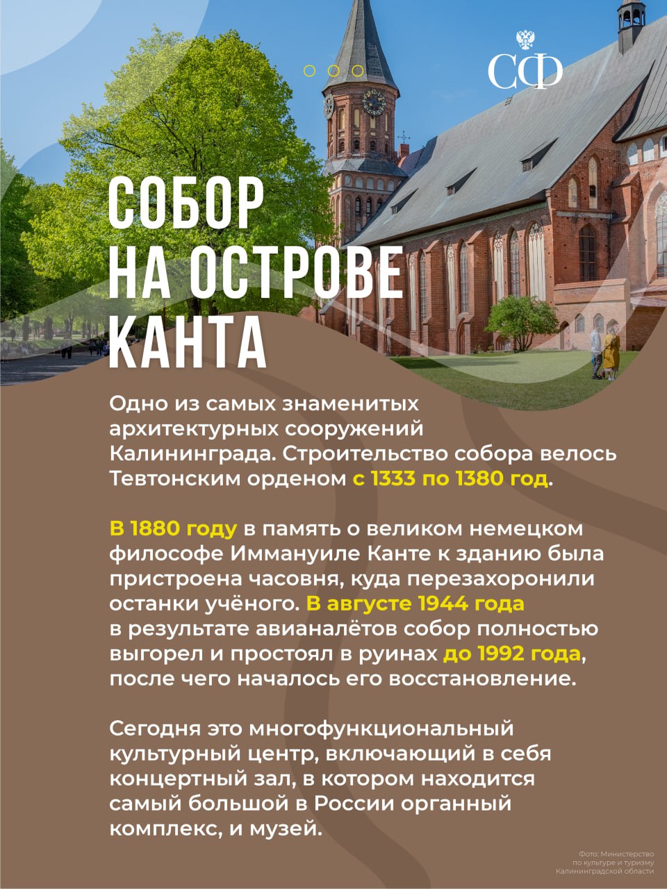 О том, с какими достопримечательностями стоит познакомиться, рассказали в специальных карточках, которые подготовили с коллегами из Министерства по культуре и туризму Калининградской области.