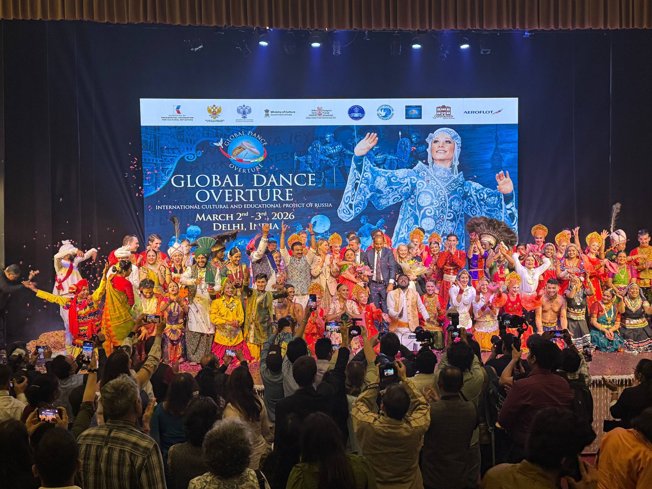 3 февраля в Нью-Дели в концертом зале «Kamani Auditorium» в рамках международного культурно-образовательного проекта России «Танцевальная увертюра мира» в странах БРИКС с аншлагом состоялся показ хореографического спектакля «Национальное шоу России» Русского национального балета «Кострома», организованный при поддержке Посольства России в Индии.