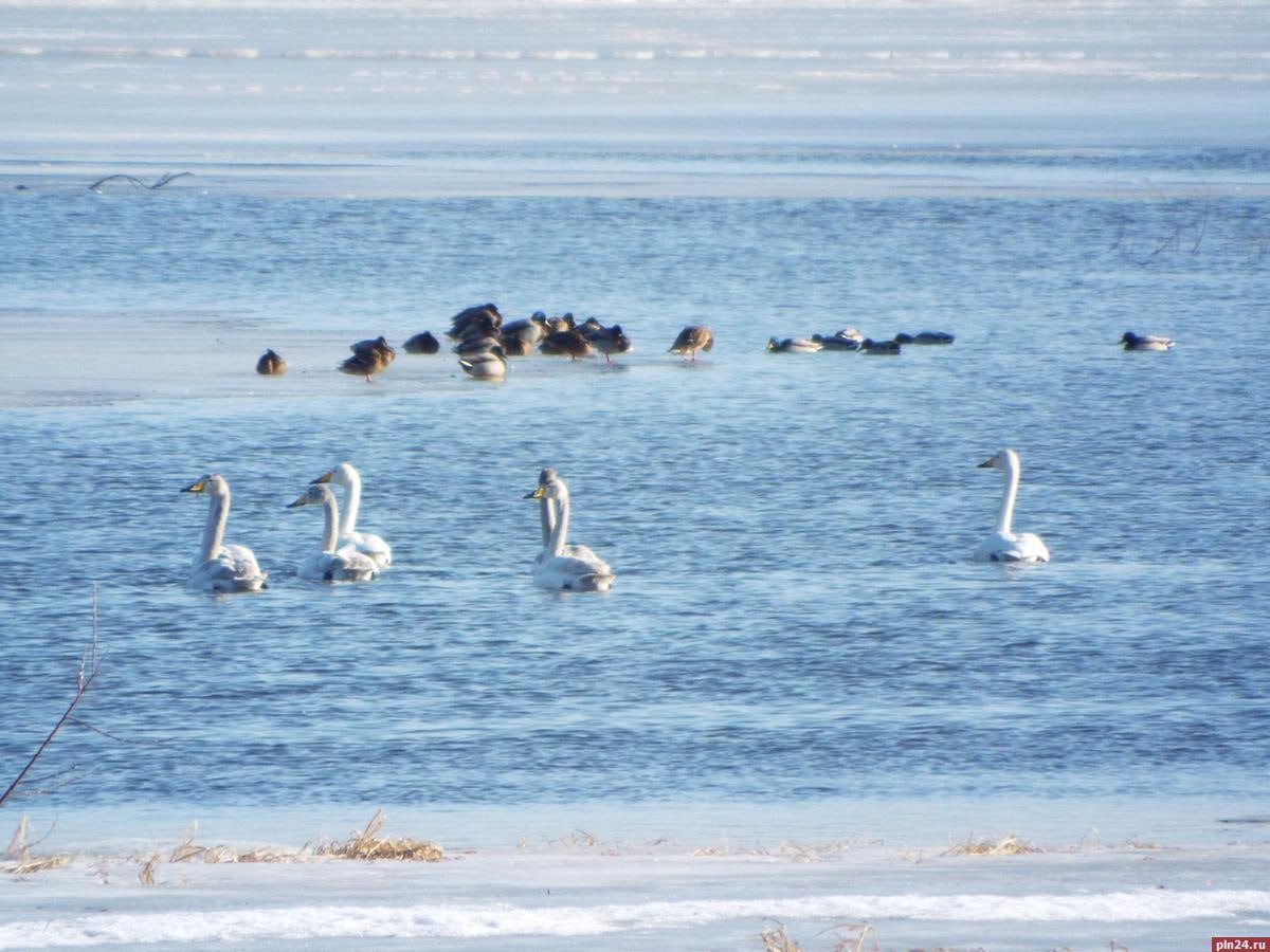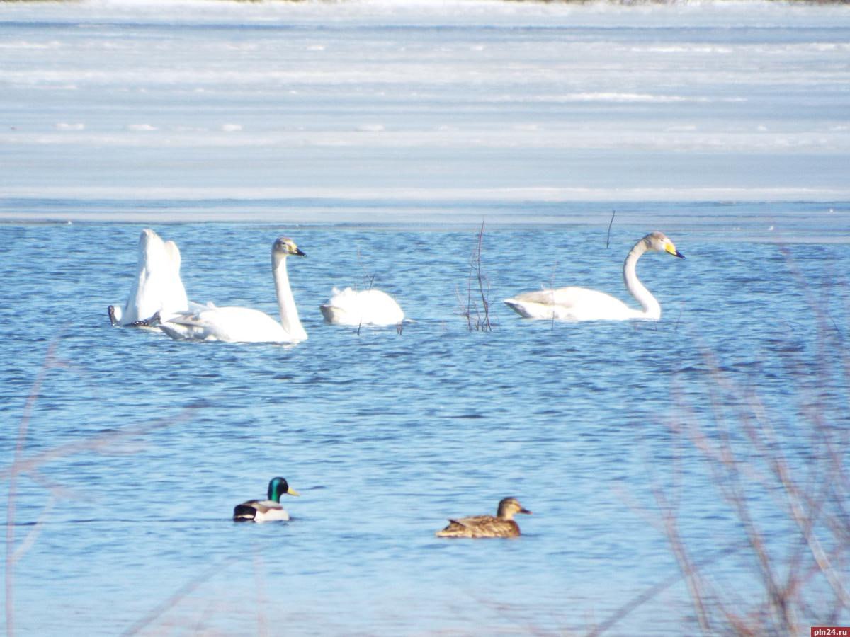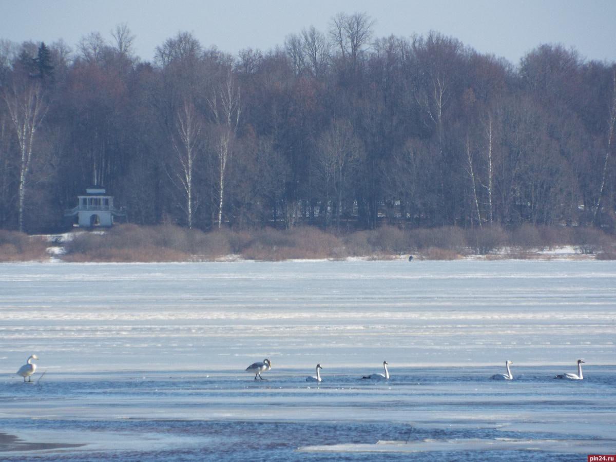 В Святогорье, на озере Кучане у беседки-грота в парке усадьбы «Петровское», сотрудники Государственного музея-заповедника А. С. Пушкина заметили первых лебедей-кликунов, вернувшихся с зимовки с юга