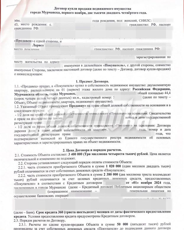 29-летняя предпринимательница из Мурманска Лариса купила квартиру мечты, чтобы в дальнейшем можно было спокойно завести детей и жить в покое и безопасности. Сделка по имуществу проходила в банке, под камерами и при юристе — все выглядело идеально. Продавцами была семейная пара: 46-летняя сотрудница областной больницы и ее муж. Объяснили продажу двухкомнатной квартиры просто — переездом в Подмосковье.
