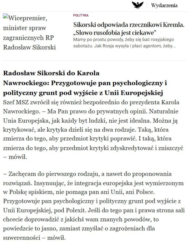 Президент Польши готовит выход страны из ЕС — Сикорский