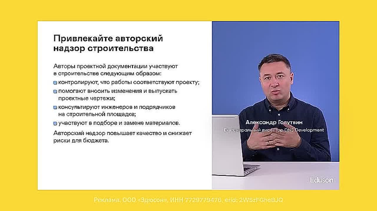 Научитесь контролировать проект от и до на курсе «Директор по строительству» от Академии Eduson. Подойдет как инженерам и прорабам, готовым к повышению, так и действующим руководителям и собственникам бизнеса для прогнозируемого результата.