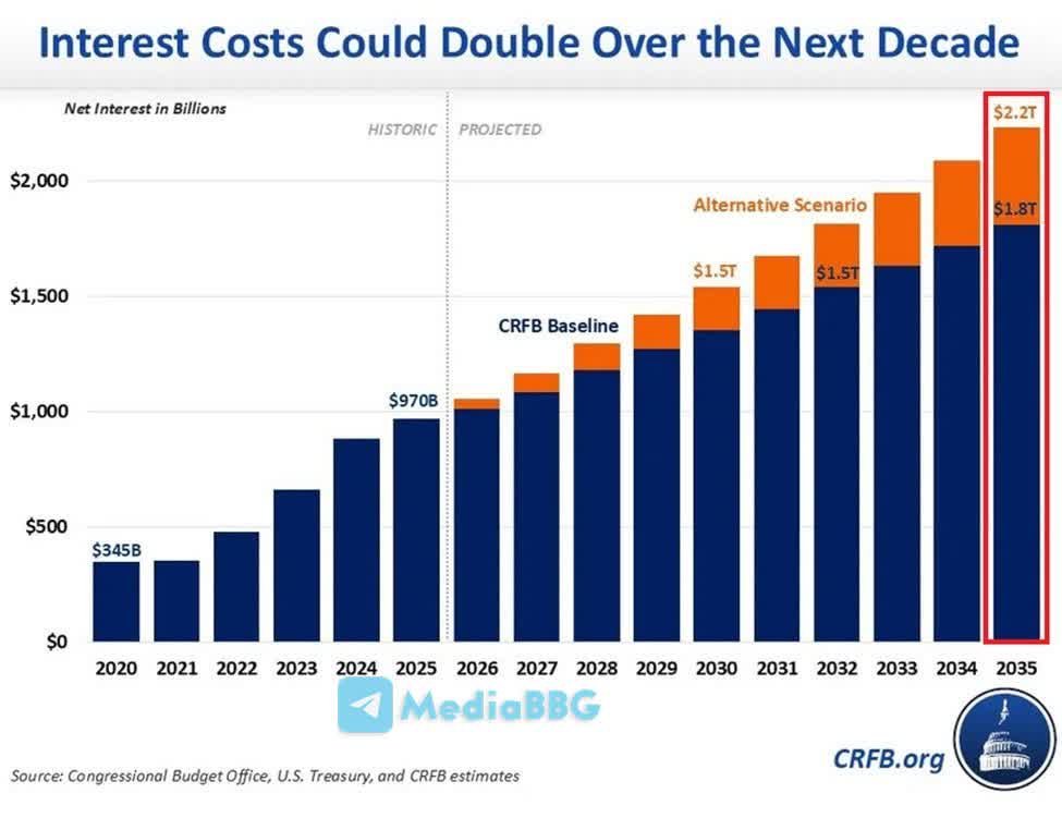 К 2035 году только процентные платежи по госдолгу США могут перевалить за 2 трлн.$...