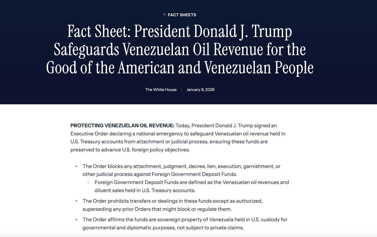 Трамп подписал указ о защите доходов, полученных от продажи венесуэльской нефти, хранящихся на счетах Минфина США, сообщает Белый дом.