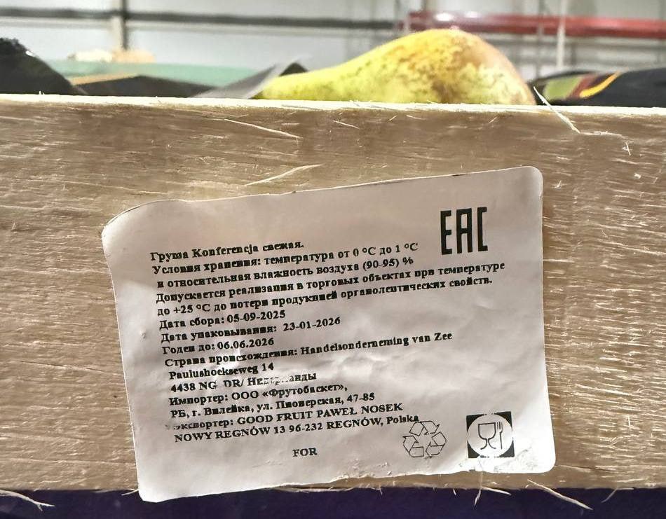 В Псковской области уничтожили более 40 тонн незаконно ввезенных европейских груш