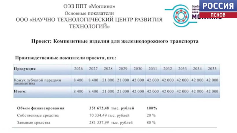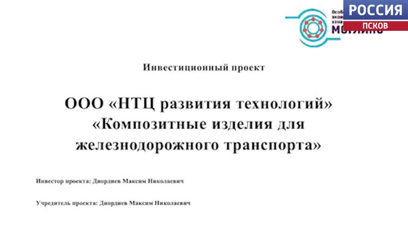Проект "Научно-технологического центра развития технологий" по производству композитных изделий одобрил экспертный совет во главе с губернатором Михаилом Ведерниковым. На предприятии планируется производить кожухи зубчатой передачи локомотивов из композиционных материалов. Они более легкие и в то же время более прочные по сравнению с металлическими аналогами. Инвестор планирует задействовать псковские инженерно-проектные и строительно-монтажные организации. Сумма инвестиций составит около 350 миллионов рублей. На предприятии будет создано 105 рабочих мест.