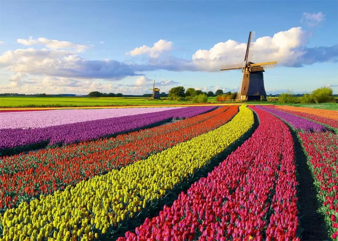 Тюльпаны, розы, гвоздики, хризантемы, альстромерии, гипсофилы, герберы и ирисы были выращены в Нидерландах, Эквадоре и Кении
