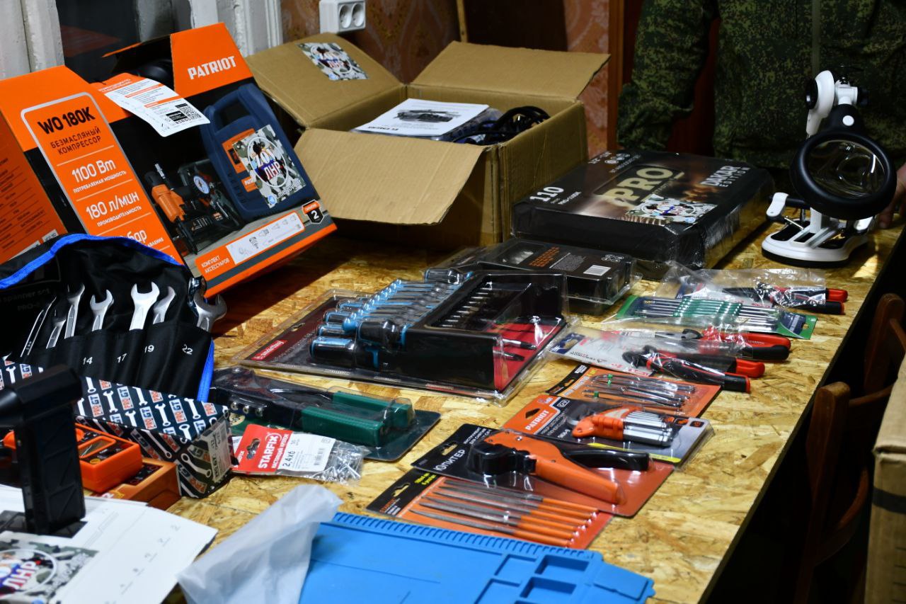 В составе груза все необходимое для лаборатории БПЛА, - паяльная станция, комплекты для пайки, осциллографы, различные наборы сопутствующих инструментов для производства и ремонта коптеров и FPV-дронов и многое другое (детальнее в видео)