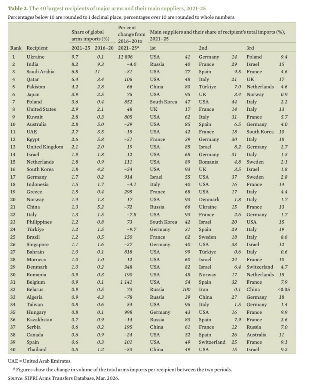 Украина купила оружия больше всех в мире за 2021-2025 год — SIPRI