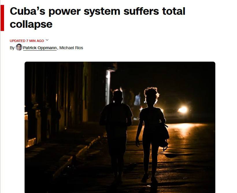 По данным CNN, в понедельник электросеть Кубы полностью вышла из строя, что привело к общенациональному отключению электроэнергии.