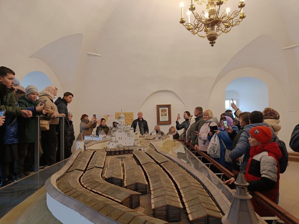 В выставочном зале колокольни Свято-Троицкого кафедрального собора осмотрели макет Псковского Кремля в образе XV века «Столичный центр вечевого Пскова». В завершение посетили сам Свято-Троицкий кафедральный собор, приложились к древним иконам и приняли участие в литургии за здравие живых и за упокой погибших воинов.