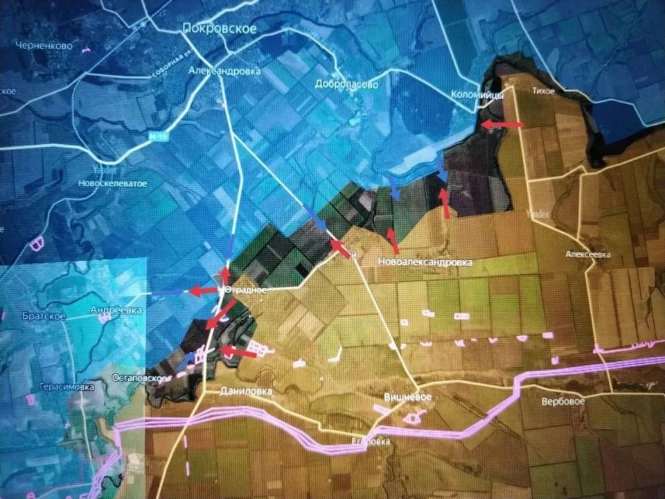 На северном фланге участка противник предпринимает активные контратакующие действия и пытается не допустить прорыва наших подразделений за р. Волчью, в направлении Покровского, и Гайчур, в направлении Запорожья.