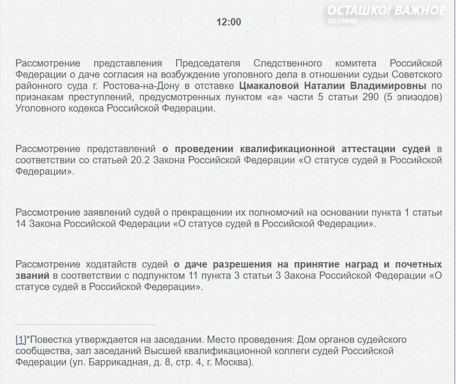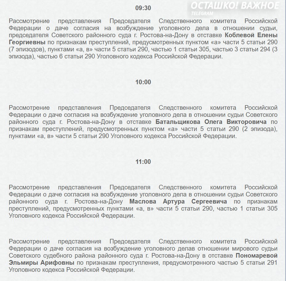 Председатель Следственного комитета России Александр Бастрыкин запросил у Высшей квалификационной коллегии судей (ВККС) согласие на возбуждение уголовных дел о коррупции против пяти судей из Ростова-на-Дону: