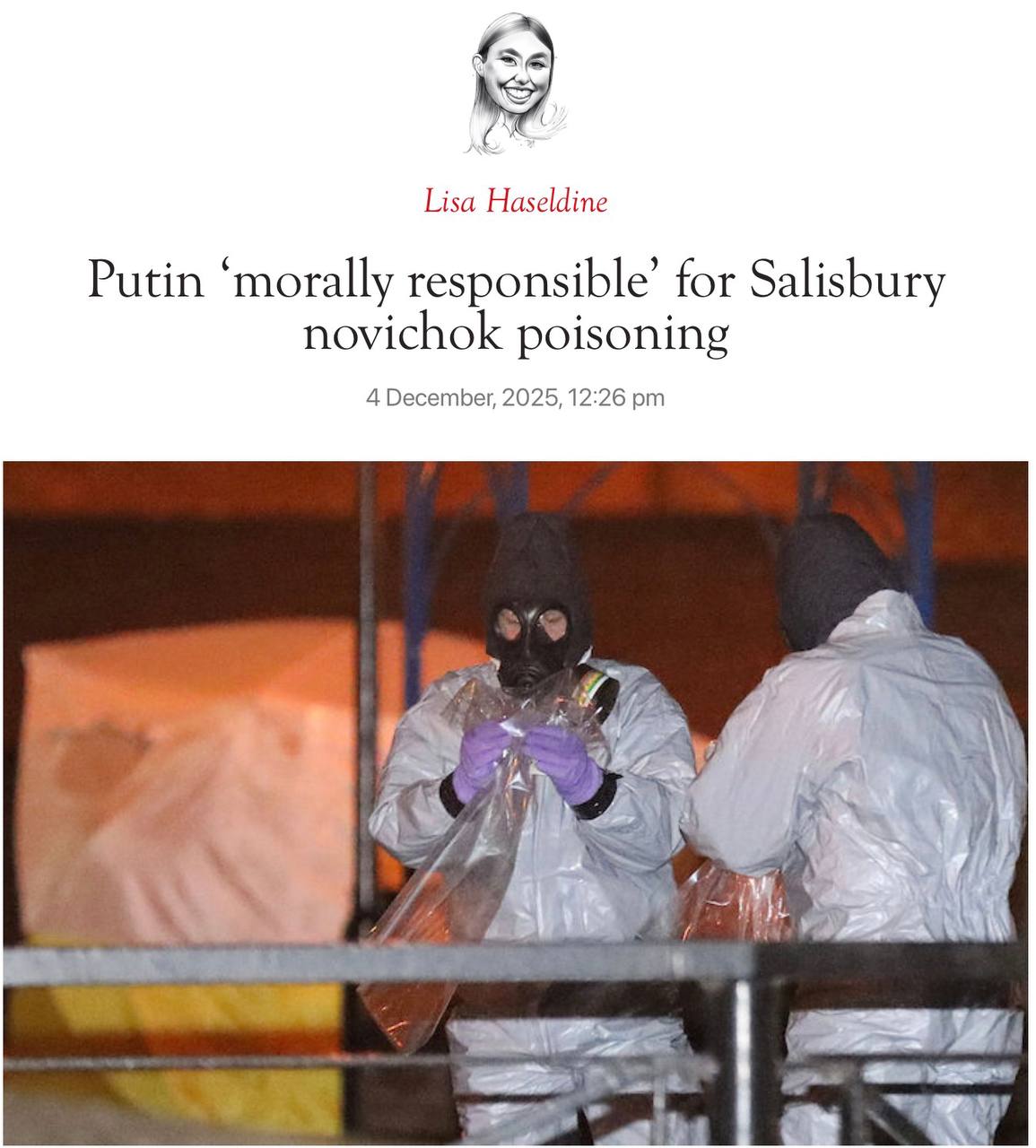 Главный итог расследования гибели бездомной Дон Стерджесс, отравившейся «новичком» в Солсбери: Путин «морально ответственен» за отравление. Простите, а часовню тоже я развалил?