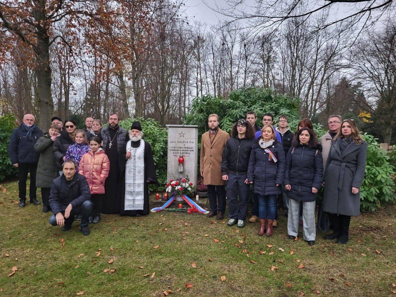 Генконсул О.Ю.Красницкий принял участие в траурной церемонии на кладбище в Зигбурге. «В этот день мы ежегодно все вместе чтим память миллионов советских граждан, кто отдал свой долг и остался неизвестным», - отметил Генконсул. Заупокойную литию отслужил Иерей Евгений Теодор, Настоятель прихода Покрова Пресвятой Богородицы в Бонне.