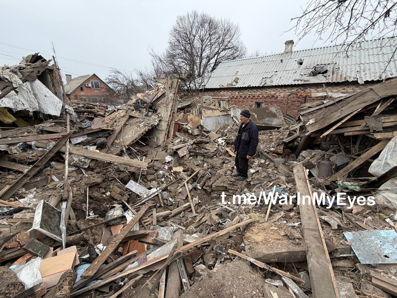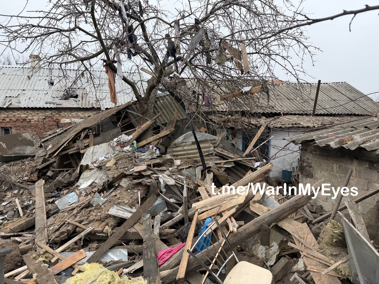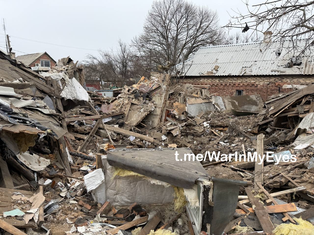 В результате прямого попадания снаряда полностью разрушен частный жилой дом, погибла женщина, парень с девушкой получили ранения.