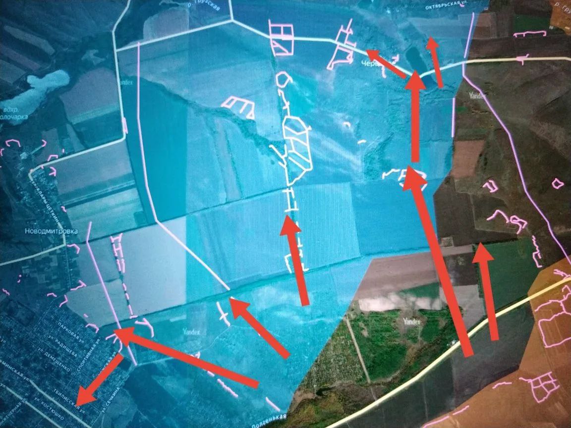 В это время наши продолжают наступление восточнее Константиновки (севернее трассы Н-33) и выбили противника из части опорных пунктов района обороны юго-западнее Червоного и, согласно оперативной информации, взяли под контроль само Червоное (западнее Часов Яра).