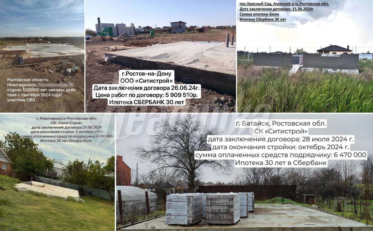 В Ростовской области около 300 семей, в основном родственники военных, оказались в безвыходном положении после сделок с компанией «Ситистрой». Несмотря на общественный резонанс, на их участках до сих пор стоят лишь фундаменты, хотя за дома уже заплачено более 100 млн, рассказали Readovka пострадавшие. Пострадавшие начали голодовку, а собственник фирмы, Арутюн Арутюнян, сбежал из России и объявлен в международный розыск.