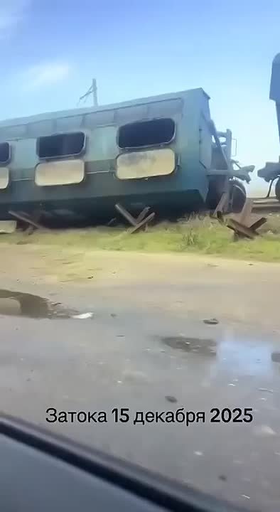 На кадрах — железнодорожный состав, попавший под удар во время обработки данного района 15 декабря.