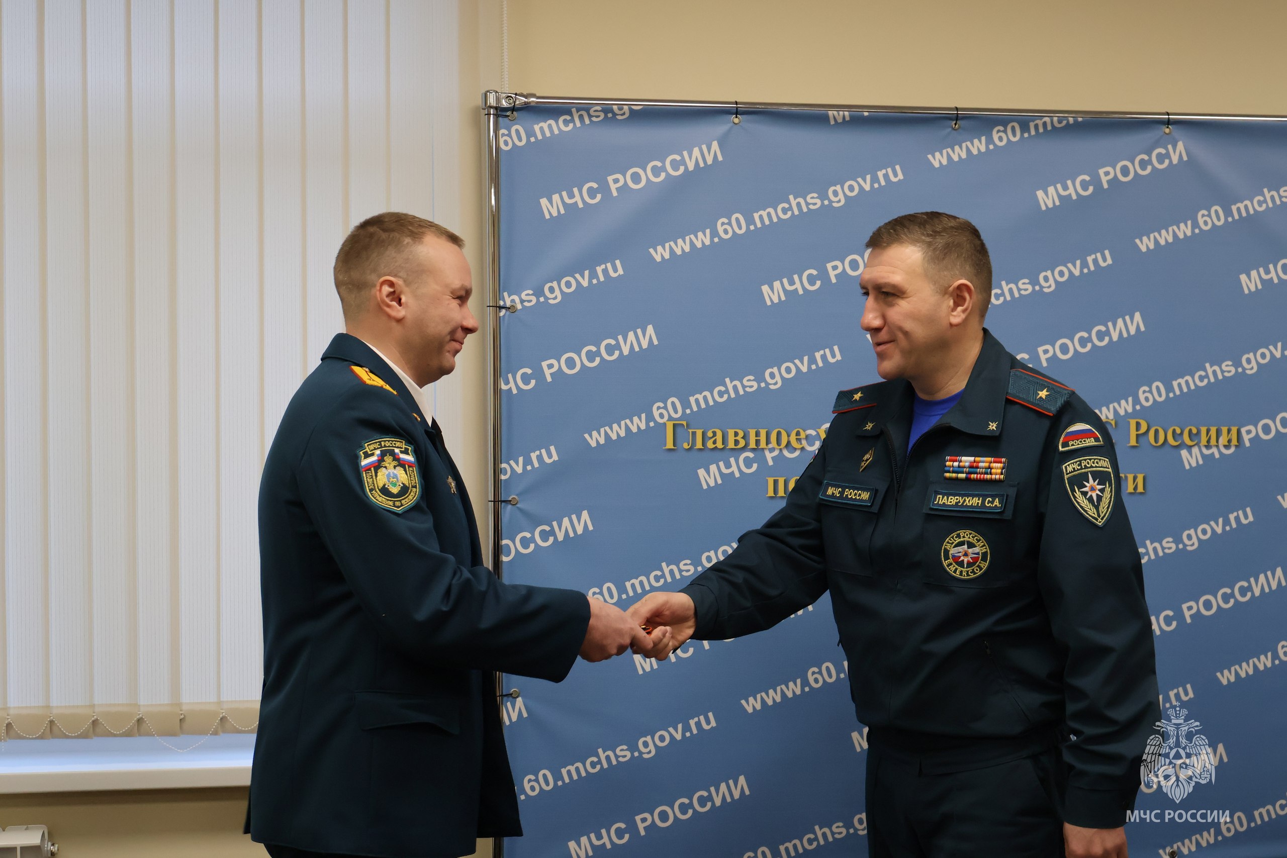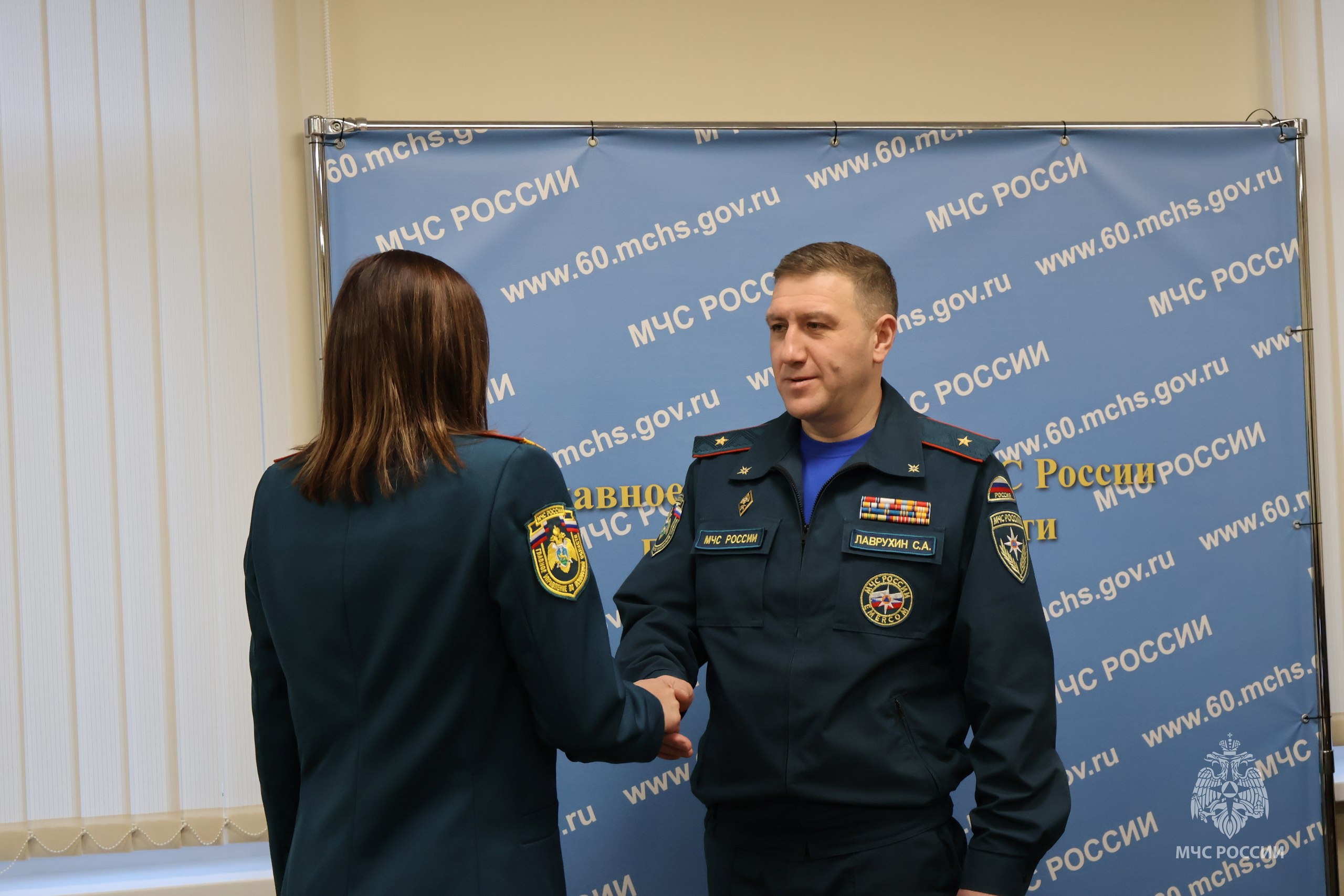 Сегодня руководитель псковского чрезвычайного ведомства Сергей Лаврухин вручил сотрудникам очередные специальные звания среднего начальствующего состава.