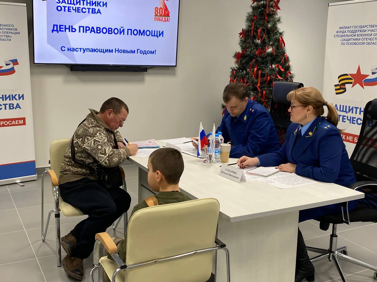На базе местного филиала государственного фонда поддержки участников специальной военной операции «Защитники Отечества» личный приём граждан провели прокурор Псковской области Андрей Мошков и военный прокурор Псковского гарнизона Вадим Иванченко.