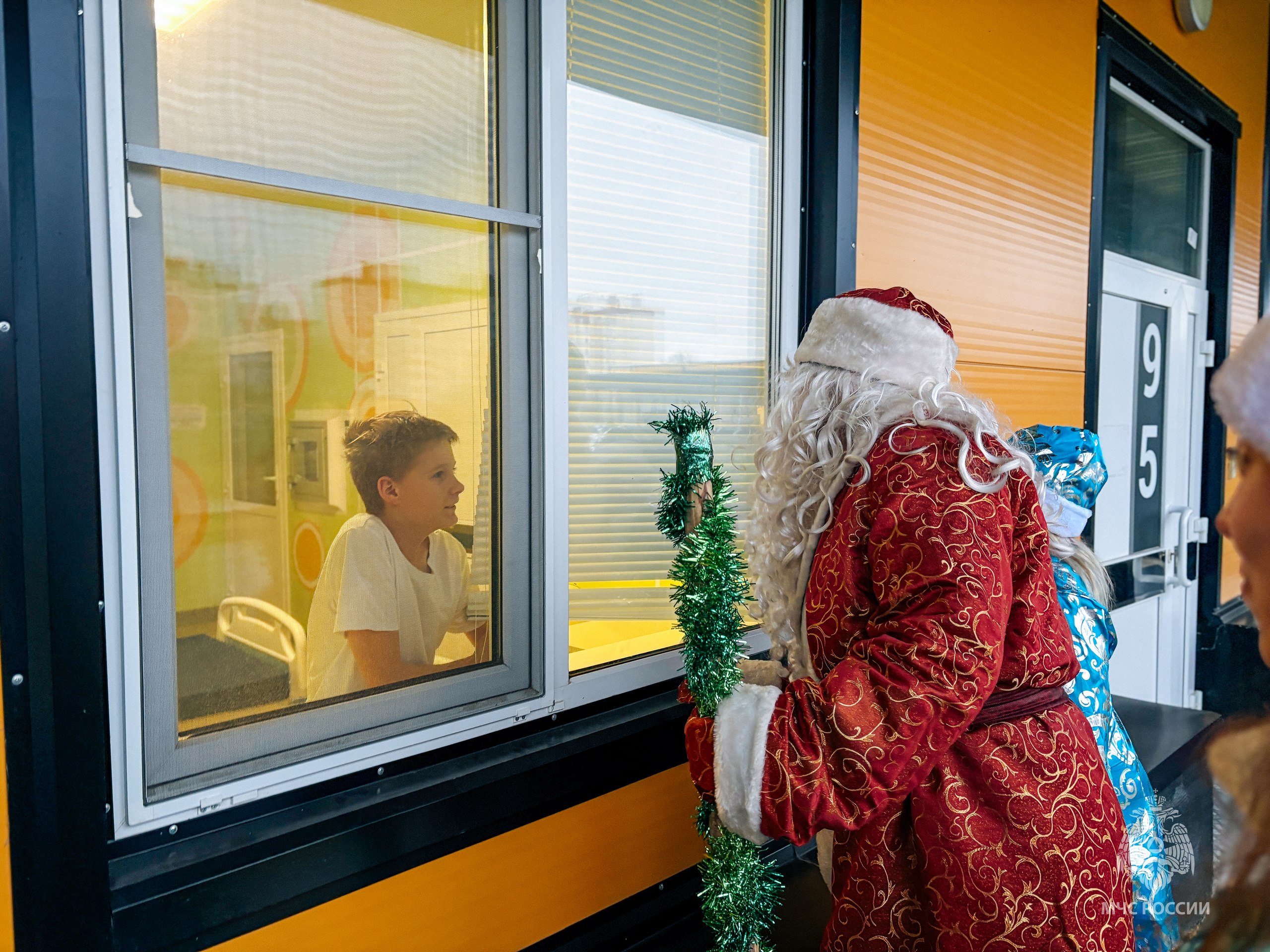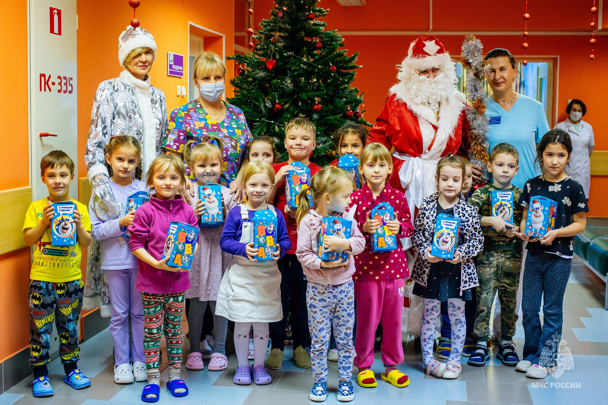 А также сотрудники Главного управления и волонтеры поздравили с наступающим Новым Годом детей, которые находятся на лечении в ГБУЗ ПО "Псковская областная инфекционная клиническая больница" и передали им сладкие подарки через медицинский персонал больницы.