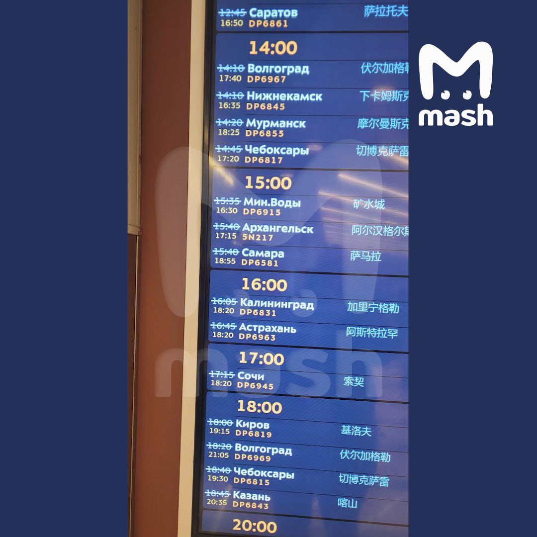 По данным Mash, 20 рейсов на вылет и 86 на прилёт задерживаются в Шереметьево. Среди направлений, которые задержаны на вылет, — Калининград, Уфа, Сочи, Волгоград, Астрахань, Красноярск, Самара, Минеральные Воды.