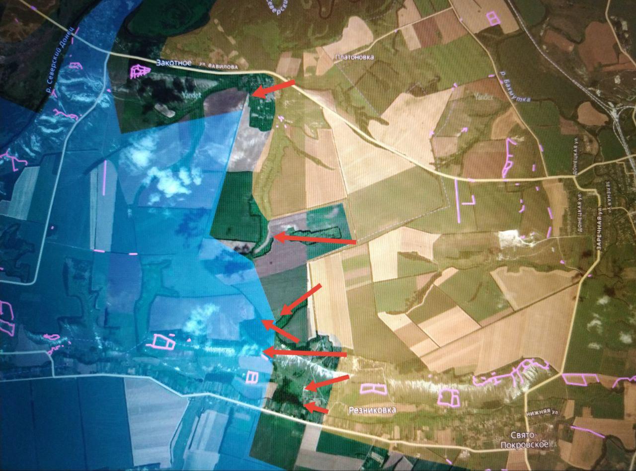 Противник выбит с нескольких позиций на высотах севернее Резниковки. ВС РФ продвинулись юго-восточнее Закотного, за которое продолжаются ожесточённые бои в северо-восточной и восточной частях.